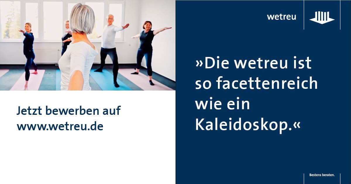 Für die persönliche Absicherung der Mitarbeiter hält wetreu einen Schutz durch eine arbeitgeberfinanzierte Gruppenunfallversicherung im Beruf und in der Freizeit vor.