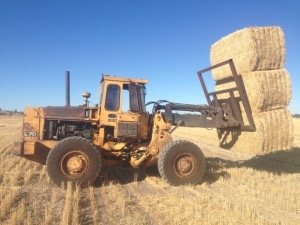 Zu meinem Bedauern streikt unser zweiter Radlader immer noch und so musste ich die Ballen notgedrungen mit dem alten John Deere Traktor verladen, was bei einer Außentemperatur von knapp 38 Grad alles andere als angenehm war.