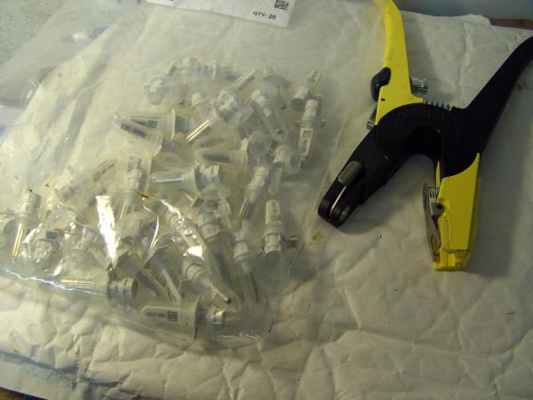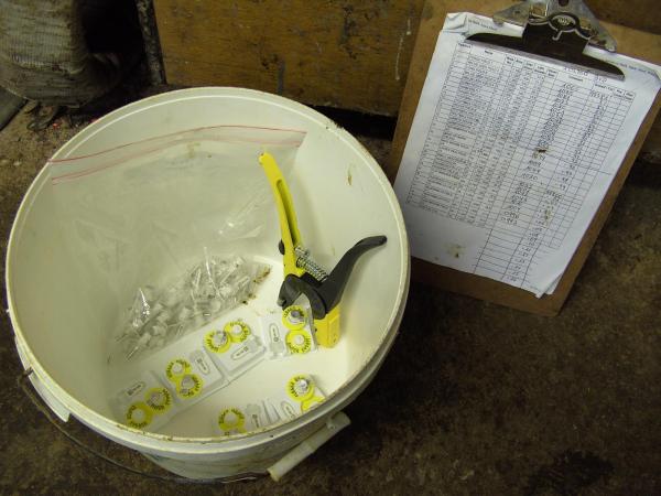 So machte ich mich nach dem Melken mit dem Quad zum anderen Ende der Farm auf und trieb die Färsen zur Hauptfarm. Da wir die Färsen in einem Arbeitsschritt auch entwurmen, bereiteten wir alles entsprechend vor und organisierten die verschiedenen Arbeitsschritte. Während der Farmarbeiter die Färsen in den Behandlungsstand trieb und Tom diese zunächst entwurmte, musste ich alles für das Einziehen der neuen BVD-Ohrmarke vorbereiten. Diese kleinen, rundlichen Ohrmarken sind mit einer eigenen, fortlaufenden Nummer versehen und können mit einer speziellen Zange ins Ohr des Rindes eingezogen werden. Dabei wird aus dem Ohr eine Gewebeprobe gestanzt, welche anschließend in einer kleinen Tube laborreif versiegelt wird.