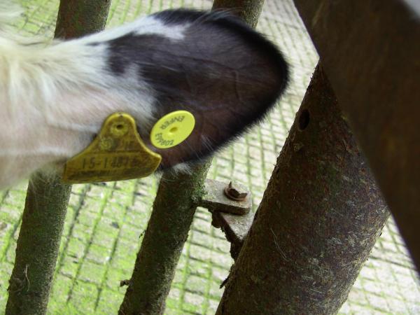 Da bei positivem Befund BVD-infizierte Tiere gemerzt werden müssen, lag die wichtigste Aufgabe in der richtigen Zuordnung der alten Ohrmarken-Nummer (Tieridentifikation) mit der neuen Ohrmarken-Nummer (BVD-Test). Diese Nummernpaare wurden von mir akribisch in einer Liste dokumentiert während Tom einer Färse nach der anderen die neuen Ohrmarken am rechten Ohr einzog. Wie auch die normale Ohrmarke verbleibt diese lebenslang am Tier und garantiert bei negativen Laborergebnis dem Tier einen lebenslangen „unverdächtigen BVD-Status“, sprich diese Tiere müssen nie wieder beprobt werden.