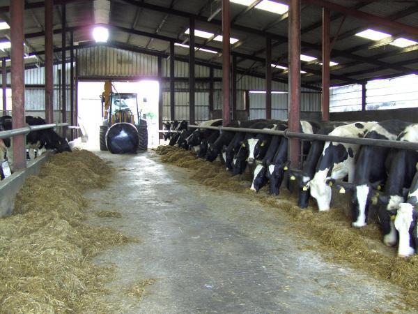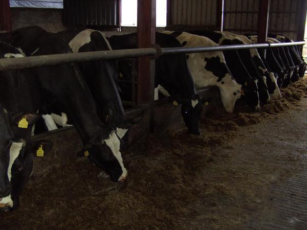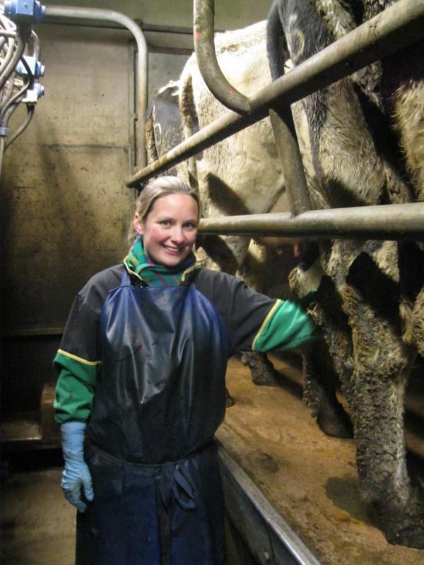 Bei meinem Weg zum Wohnhaus, wo wir gemeinsam frühstücken, werfe ich einen Blick auf die trockenen Kühe im Stall, welche als letzte Tiergruppe im Stall zurück geblieben ist und bereite das Mineral- und Kraftfutter vor. Nach dem Frühstück gebe ich die vorbereitete Menge über die Silage und reinige die Liegeboxen. Da nun alle Tiere am Fressgitter stehen, beurteile ich jede Kuh einzeln auf Geburtsanzeichen und notiere die Tiernummer, so dass wir abends entscheiden können, ob die Kuh mit den Kalbinnen hoch zum Abkalbereich geht. Da ich diese Kontrolle täglich durchführe und alle Tiere mittlerweile gut kenne, lassen sich spontane Geburten im Stall vermeiden. Manchmal schalten wir auch über Nacht die Spaltenschieber aus um extra sichergehen zu können, dass kein Spontan-Kalb diesen zum Opfer fallen wird.