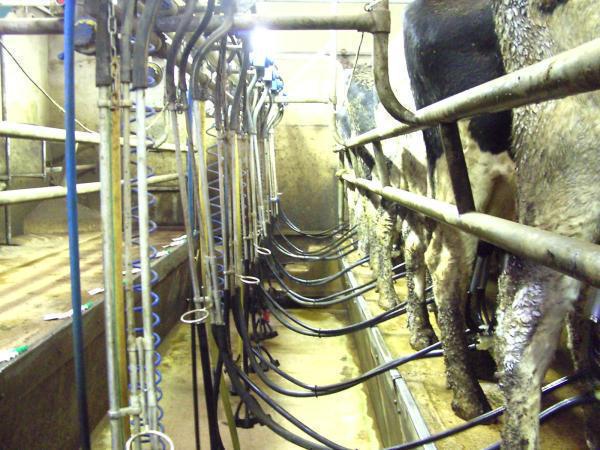 Nach dem Melken stehen dann neben Reinigen der Melkanlage, sowie des Melkstandes natürlich die Kälberfütterung an erster Stelle. Zuerst erhalten die jüngsten Kälber in den Einzelboxen die wenige Minuten zuvor frisch gemolkene Eimermilch. Nach Reihenfolge der letzten Abkalbungen starte ich mit dem jüngsten Kalb und gebe jedem Kalb 2 l Milch in den Nuckeleimer. Während die älteren Kälber den Eimer innerhalb weniger Minuten leer putzen, versuche ich die jüngeren Kälber an den Nuckeleimer zu gewöhnen. Um nicht unnötig Zeit zu verlieren, werden Kälber, die nicht am Eimer trinken, gedrencht, welches ich meistens direkt im Anschluss erledige.
