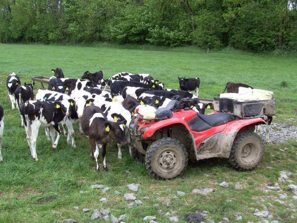 Aufgrund der engen Abkalbe- und Besamungsfristen im hiesigen System wurden alle Kühe mit später Brunst im letzten Jahr mit Black-Angus-Bullen besamt. Zum einen können diese Kälber auf Grund ihres späten Geburtstermins nicht mit den Kälbern aus Januar/Februar mithalten und zum anderen werden nur ca. 40 Tiere als Nachzucht behalten, so dass alle spät geborenen Kälber sowieso verkauft werden müssen. Und da in der Regel Fleischkälber einen besseren Preis am Markt erzielen, entschied sich Tom für die Kreuzung mit Black-Angus-Bullen. Er suchte dabei letztes Jahr sehr leichte und einfach abkalbende Bullen aus um seine Milchkühe nicht mit einer schweren Geburt zu belasten.