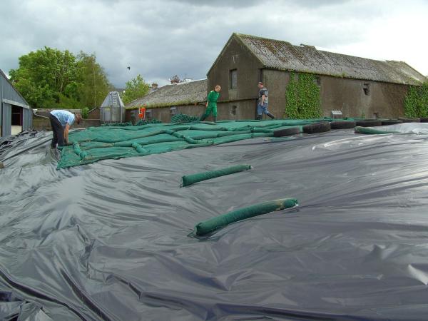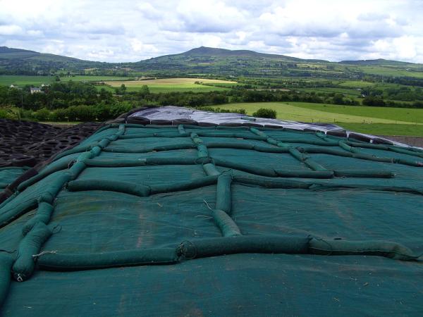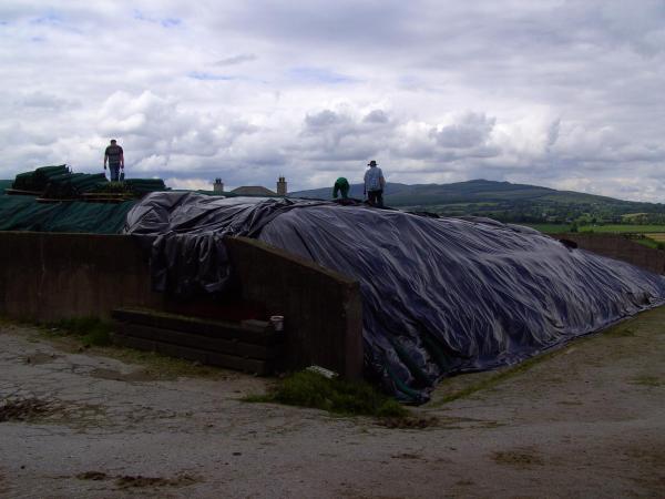 Im Minutentakt brachten die Traktorzüge das Erntegut zum Silo und ließen weder den Häcksler auf dem Feld noch den Frontlader auf dem Silo stillstehen. Glücklicherweise hat das Wetter den ganzen Sonntag über mitgespielt und so wurden wir von Regen verschont. Da am Abend wieder die Kühe gemolken werden mussten und parallel zur Einsilierung die täglichen Routinearbeiten auf der Farm weiterliefen entschieden wir das Silo am nächsten Tag abzudecken. Aufgrund der Tatsache, dass sich im Silo noch Futter vom letzten Winter befand, überlappten wir die alte und neue Silofolie und beschwerten diese anschließend mit Autoreifen und Sandsäcken. Siliermittel wurden nicht eingesetzt.