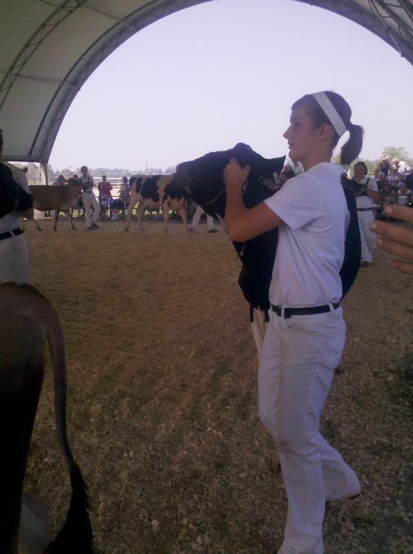 Hier wird nicht nach dem Alter des Vorführers geschaut, sondern nach der Anzahl der Teilnahmen jedes Einzelnen. Gruppe 1 ist für die Kinder, die zum ersten Mal teilnehmen, Gruppe 2 für das 2. und 3. Jahr, Gruppe 3 für die Jahre 4-6 und Gruppe 4 für über 6 Jahre. Teilnehmen kann jeder im Alter von 10 bis 22 Jahren, für die 5- 10- jährigen Kinder gibt es einen eigenen Wettbewerb, „Pre-4-H“ genannt. Hierbei erzielte die Enkelin meines Chefs den 4. Platz! Auch ein weiterer Sieg ging an meine Gastfamilie: Louies´ Nichte sicherte sich zum ersten Mal den Titel ´Reserve- Grand- Champion´.
