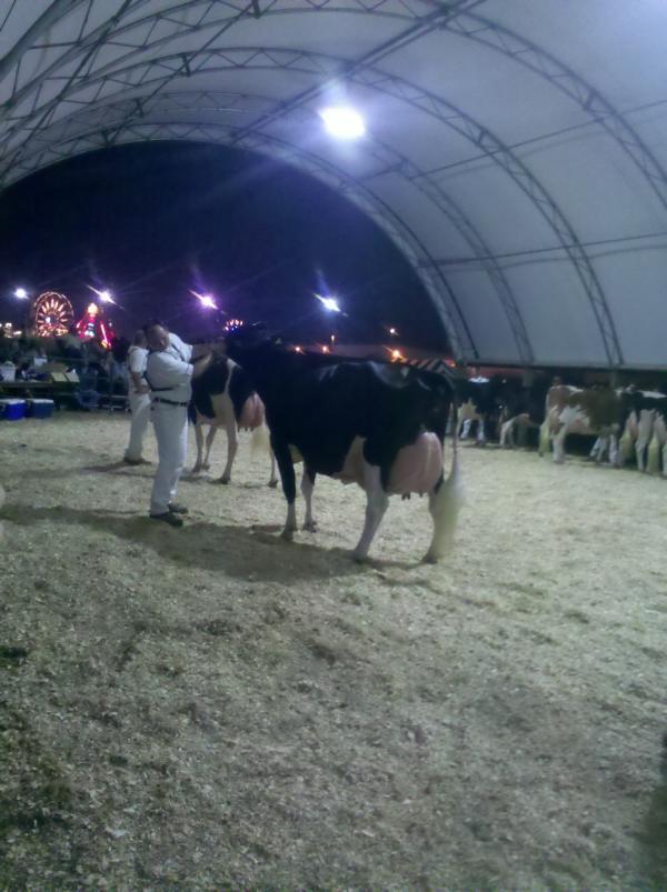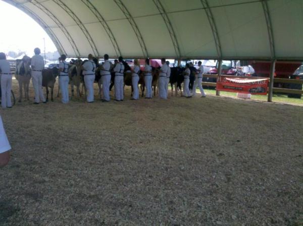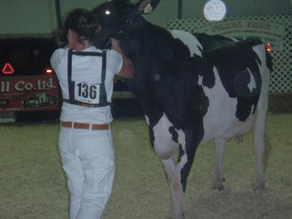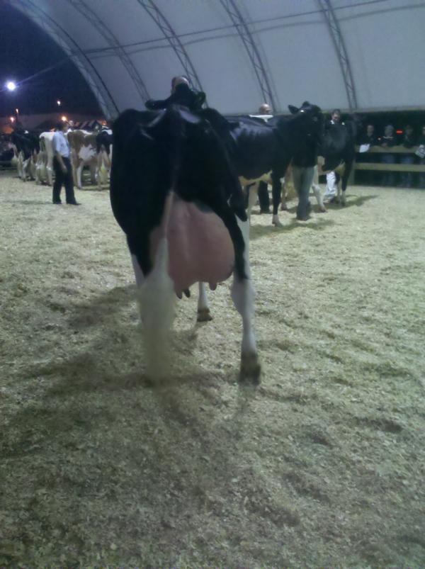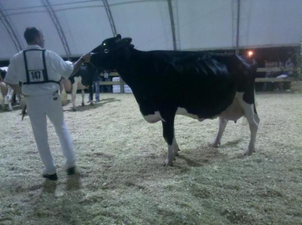 Ein Highlight für mich: Ich durfte bei der Show 4 Tiere vorführen. Dazu zählten neben einer Bolton- Tochter (Dezember- Klasse) und einer Roy-Tochter (September- Klasse) auch mein Liebling GOGO (VG 83, Senior 2- year-old) und DONNA (EX 90, Junior 3-year-old). Leider waren diese aufgrund ihrer starken Konkurrenz erfolglos. Grand Champion wurde die elfjährige DOTTIE, die auch bei der Royal schon einmal denn Titel Grand Champion trug.