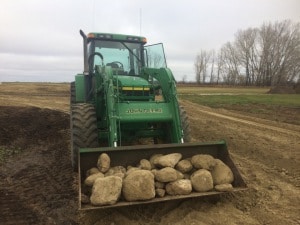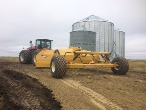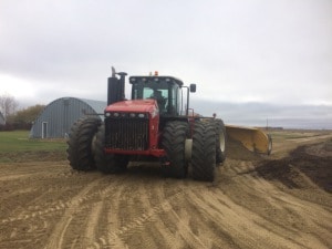 Auch interessant: So geht hier Straßenbau. Eine Zufahrt zu einigen Silos der Farm musste erneuert werden. Eine Spedition hat mit Spezialaufliegern das Material für den Weg angeliefert und wir haben dann mit dem Knickschlepper und dem Planierschild alles eingeebnet. Die 500 PS des Knickschleppers waren hier definitiv gefordert.