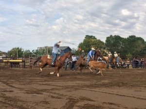 Das Programm war ein bunter Mix aus vielen verschiedenen Vorführungen und fand das ganze Wochenende über statt. Es war fast ein bisschen wie der CHIO in Aachen, nur der Sport war ein etwas anderer. Es wurde zu Beginn Pferderodeo gezeigt. Danach wurden Cowboys und Cowgirls auf ihre Schnelligkeit beim Kälber einfangen geprüft. Einzeln und im Team. Hilfsmittel waren ein Lasso und ein Strick, mit dem das Kalb nach dem Fangen fixiert wurde. Es folgte noch eine Voltigier-Vorstellung und ein Rennen bei dem Pferd und Reiter drei Hindernisse in möglichst kurzer Zeit ab galoppieren mussten. Zu guter Letzt stand Bullenreiten auf dem Programm. Ganz schön waghalsig sich auf so ein Tier draufzusetzen und vor allem heil wieder aus dem Ring zu kommen.