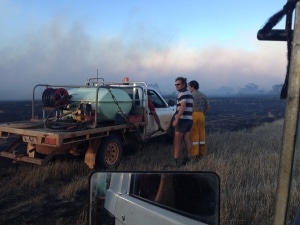 Es ist ein ungeschriebenes Gesetz, dass sich die Farmer in der Region, falls es zu einem Brand kommt, sofort gegenseitig zur Hilfe eilen. So kam es, dass sich innerhalb von 20 Minuten einige weitere Pickups zu uns gesellten und und halfen das Feuer zu bekämpfen.