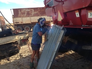 Nach diesem Ereignisreichen Tag hatten wir diese Woche noch einen Schaden an unserem Mähdrescher, die Halterung der unteren Siebe waren gebrochen und wir somit fast zwei Tage lang lahm gelegt. Hier kommt allerdings eher selten der nette Servicetechniker vorbei und kümmert sich darum, und es ist zu Zeitaufwendig den Mähdrescher zurück zur Farm in die Werkstatt zu bringen, also hat mein Chef die Siebe samt Halterungen kurzerhand mitten auf dem Acker geschweißt.