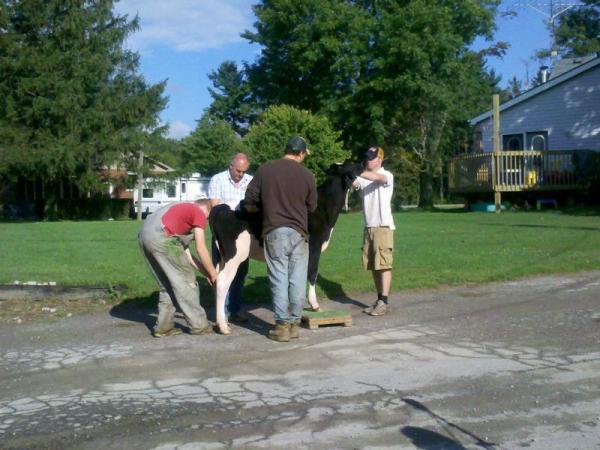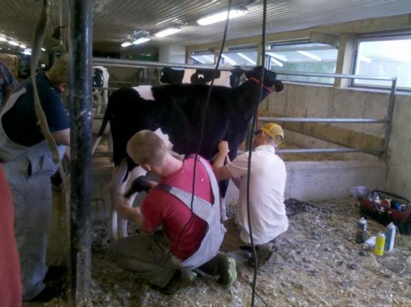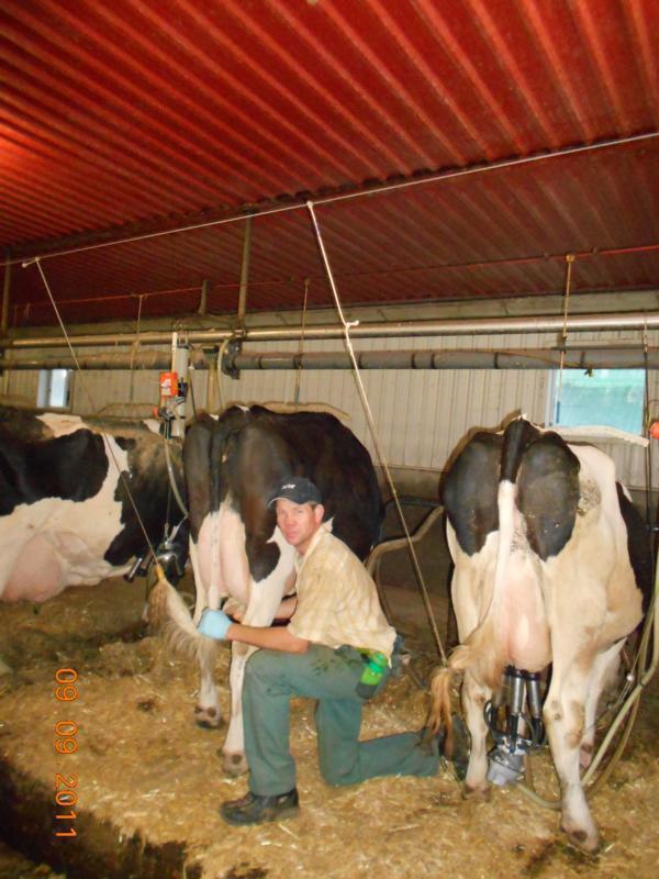 Meine Gastgeber haben den Betrieb in St. George erst vor zwei Monaten übernommen. Der vorherige Besitzer hatte seinen Hof und die Kühe in den letzten Jahren sehr vernachlässigt. Sowohl außerhalb als auch im Boxenlaufstall sah es sehr heruntergekommen aus, wie mir die Söhne hier erzählten. Damit sie überhaupt anfangen konnten, brauchten sie fast eine Woche um den Müll zu entsorgen und überall aufzuräumen. Von den zu dieser Zeit 75 Kühen wurden 10 Stück aufgrund von massiver Lahmheit und ähnlichen Problemen direkt zum Schlachthof gebracht. Dann kam ein Tierarzt, und jede Kuh wurde auf ihren Zyklus- oder Trächtigkeitsstand untersucht. Einige von ihnen befanden sich schon im 8. Monat bzw. kurz vor der Kalbung!