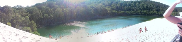 Als unser Auto im neuen Jahr dann wieder fahrtüchtig war, ging es weiter Richtung Hervey Bay. Von da aus sind wir mit einer Jeeptour zu der größten Sandinsel der Welt, Frasure Island. Dort gab es neben jeder Menge Sand auch viele wünderschöne Süßwasserseen, in denen man ausnahmsweise mal ohne Bedenken baden gehen konnte. Auch unsere ersten wild lebeneden Dingos haben wir gesehen.