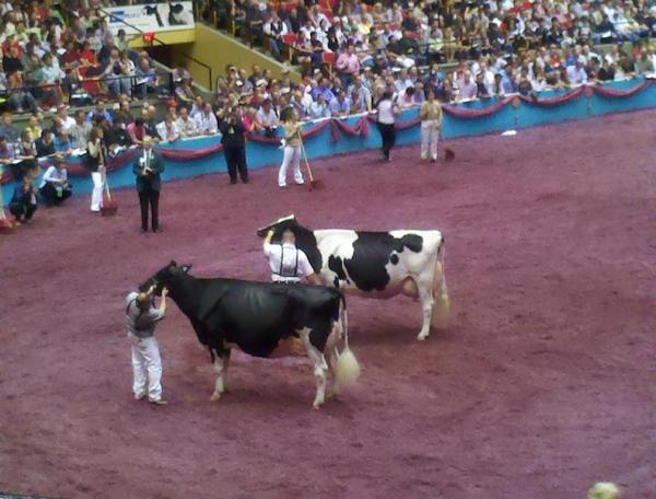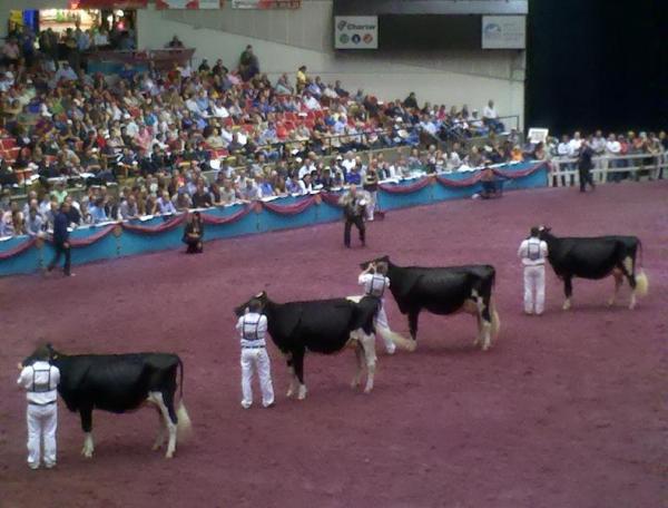 Nach der Wahl zum Grand Champion und dem souveränen Sieg von Apple schlenderten wir durch die Ausstellungsbereiche, schauten am Nachmittag immer mal wieder in der Arena der Holsteinshow zu und gingen gegen 19 Uhr ins Ausstellungs- und Seminar- Gebäude zum internationalen Dinner. Das Essen war kostenlos und, mit zugegebenermaßen etwas zu lauter und derber Musik und vielen Reden, ließen wir es uns gut schmecken.