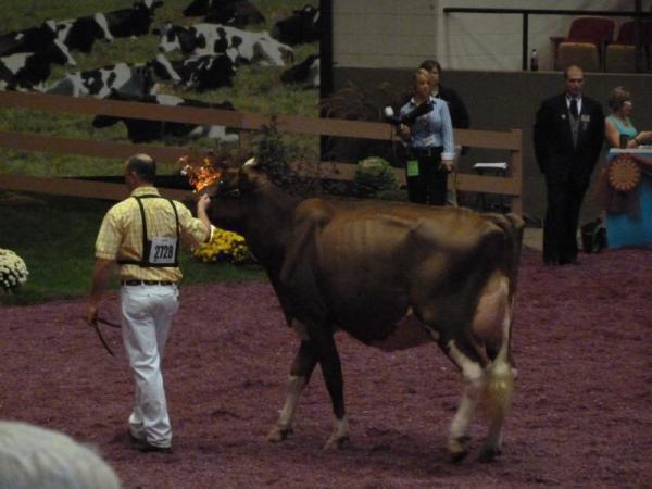 Vor allem Lotto, die mit EX 95 die am höchsten eingestufte Goldwyn- Tochter ist, Siegerin der Royal, All- American und All- Canadian sowie 2.- Platzierte in ihrer Klasse bei der World Dairy Expo 2010. Und, was es vor allem für mich und meine Gastfamilie interessant machte, die Voll-Schwester zu Lora. Lora hat ja, wie in den letzten Berichten schon beschrieben, 2 Klassensiege, einen 2. Platz und den Reservesieg Junior auf Kreis-Tierschauen erreicht. Allem Anschein nach tritt sie also ganz in die Fußstapfen ihrer großen Schwester.