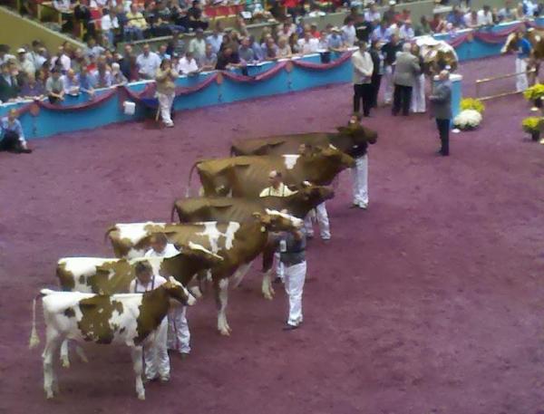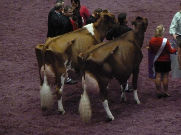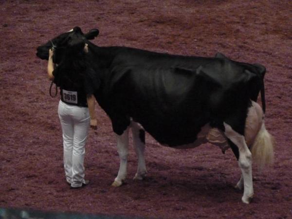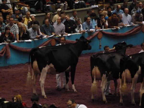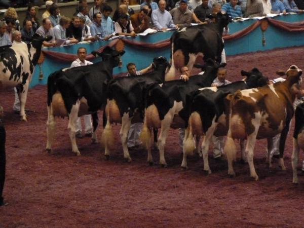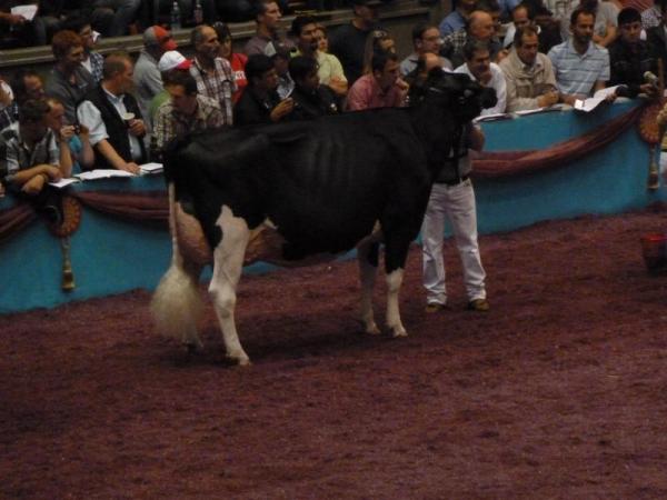 Am Samstag ging es dann in den Endspurt mit der internationalen Holstein-Show. Diese war für uns viel interessanter als die Red & White Show, demnach verließen wir schon um etwa 7:30 Uhr das Hotel mit unseren gepackten Koffern. Die Holstein- Show live zu sehen, ist einfach großartig. Die Preisrichter hatten mit Sicherheit keinen leichten Job, diese riesigen Klassen zu richten. Teilweise waren über 40 Kühe gleichzeitig im Ring! Richtig interessant wurde es ab den 4-jährigen Damen. Hier trafen nach und nach die Vorjahres-Gewinner und Titelträger von anderen Schauen aufeinander. Hezbollahs Schwanz sah übrigens perfekt aus, kaum zu glauben, wie gut ihre Betreuer den Makel vertuscht haben!