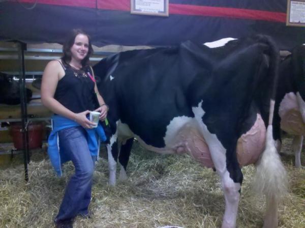 Ich kam bei den ganzen excellenten Kühen aus dem Staunen gar nicht mehr heraus. Nun kann ich auch sagen: Ich habe Kühe, die EX 95 oder EX 97 sind, live gesehen und zum Beispiel Lotto auch auf einem Foto mit mir verewigt. Der Grand Champion der internationalen Holstein- Show war am Ende die überragende Missy.